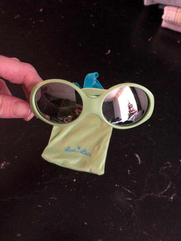 Lunette de soleil mixte avec son petit sac 0-6 mois très peu servie