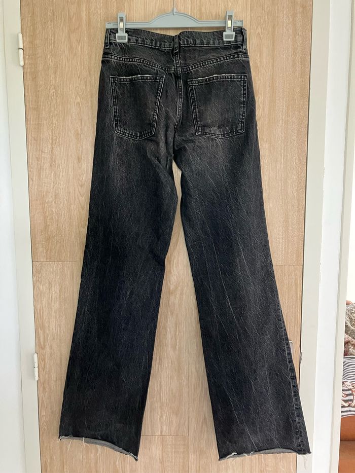 Jean noir délavé-Jambes larges-Bas effiloché-ZARA - photo numéro 2
