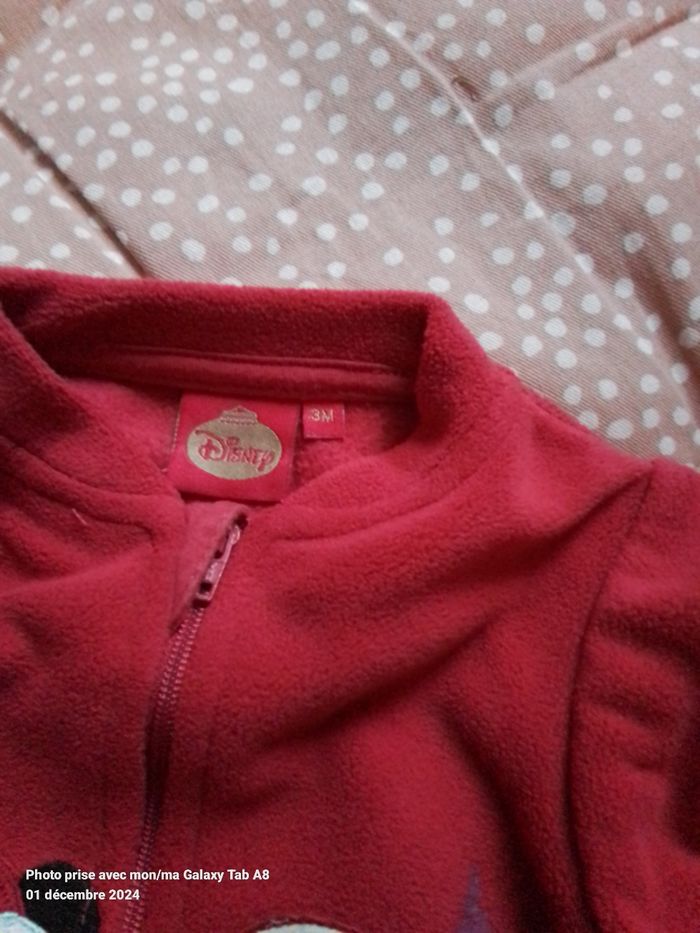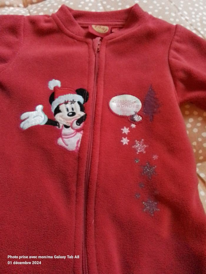 Pyjama taille 3 mois rouge disney Motif Minnie avec chapeau de noël Très bon état