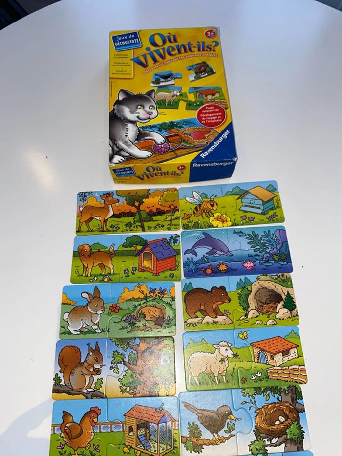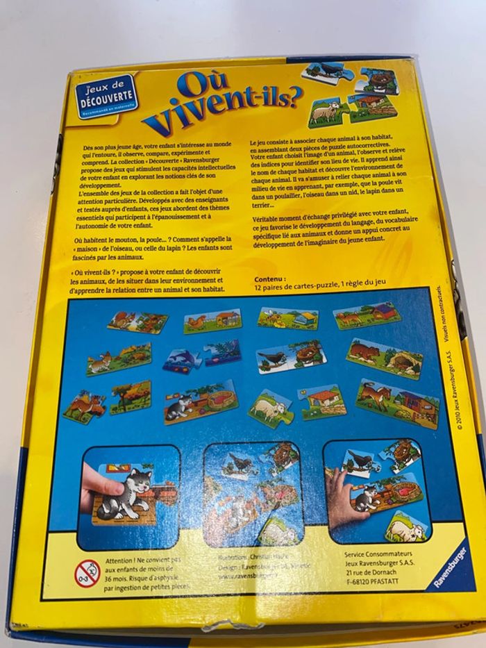 Puzzle Où vivent-ils ? de Ravensburger Il s’agit d’associer chaque animal à son habitat sous forme de puzzle autocorrectif Recommandé en maternelle Complet