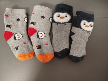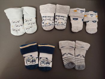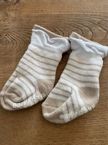 Chaussettes chaussons avec petits singes à grelots pour éveiller bébé Toute petite taille (0-6 mois max?) Très bon état