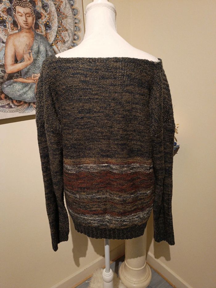 Pull loose coloris marron/ noir, bon état, petit défaut sur le haut voir photo . Étiquette de taille manquante #pullfemme40