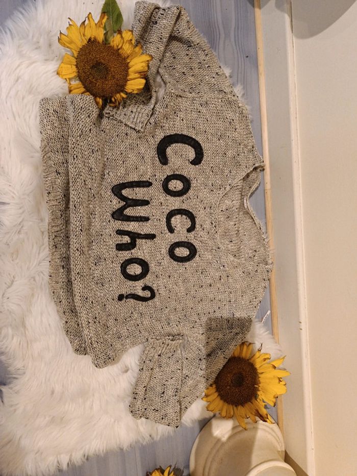 Pull mi saison beige brillant t38 étiquette manquante, bon état , inscription sur le devant #pullmisaison38