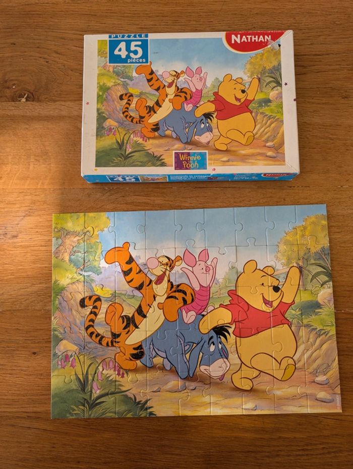 Puzzle 45 pièces Winnie l'Ourson marque Nathan. Boîte abîmée comme sur la photo.