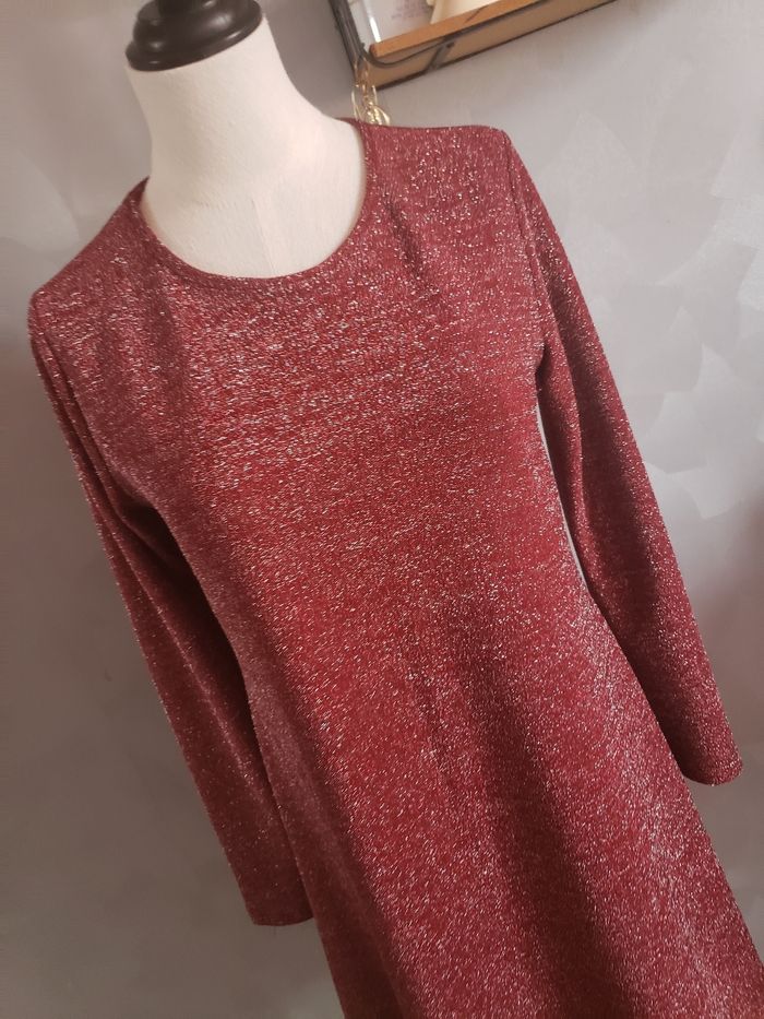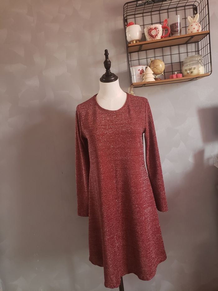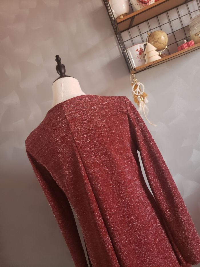 Robe longue 🎀 en parfait état Rouge bordeaux a paillettes Légère Taille unique, pas de taille indiquée (voir photo 6) Taille du mannequin : poitrine = 88cm, taille = 64cm, hanches = 83cm ⛔️ Pas de photo porté ⛔️ D'autres vêtements femme taille unique : #clemencecavalierifemmetailleunique