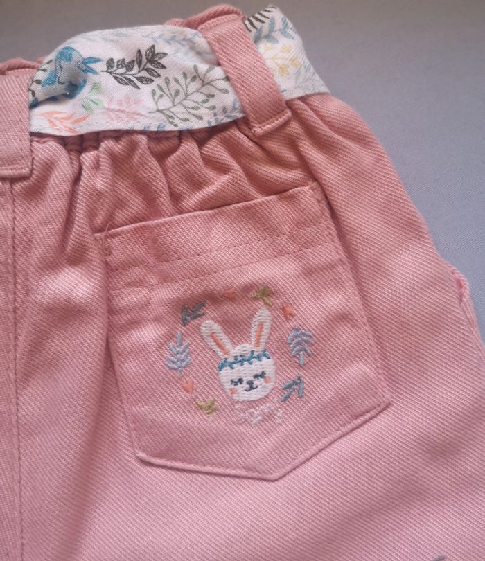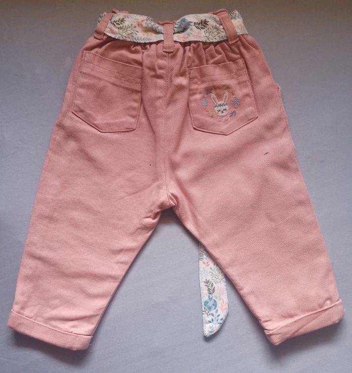Pantalon en jean avec ceinture et broderie lapin Fait partie d'un ensemble (veste doublure polaire aussi en vente sur mon profil) N'hésitez pas à profiter du code promo :-30% avant le 08/12 Neuf.