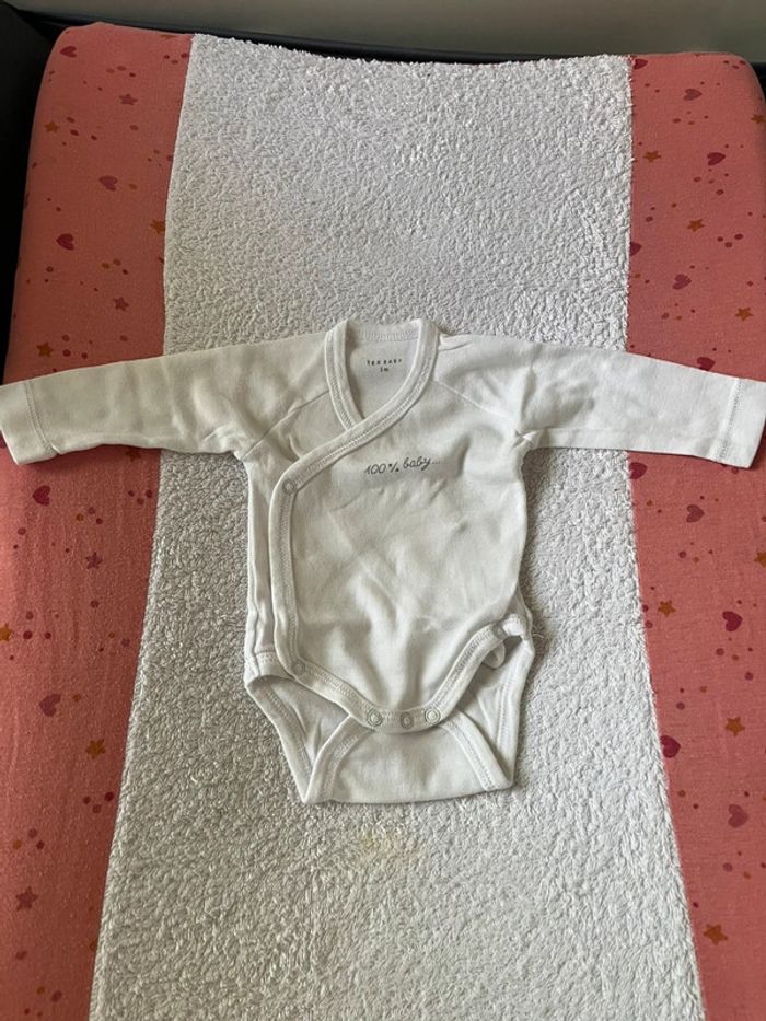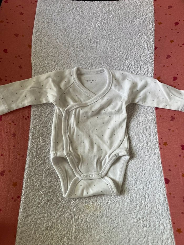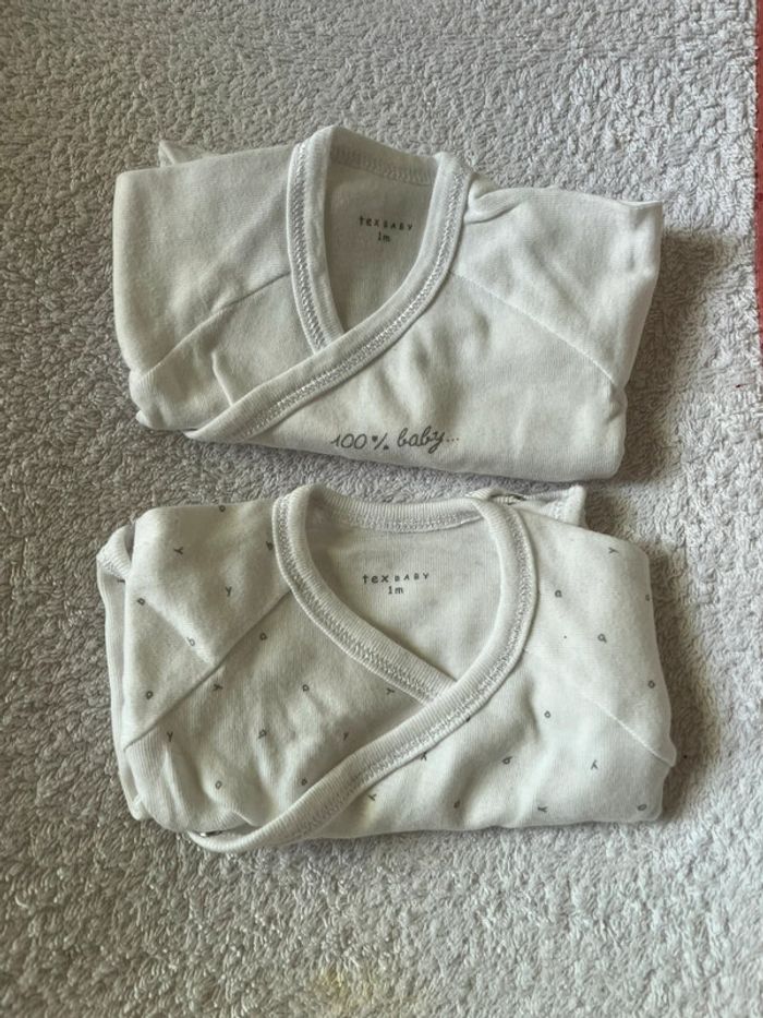 2 Body manches longues mixtes écritures et 100 % baby tex baby taille 1mois peu porté, d’autres produits et vêtements bébé disponible dans mon dressing