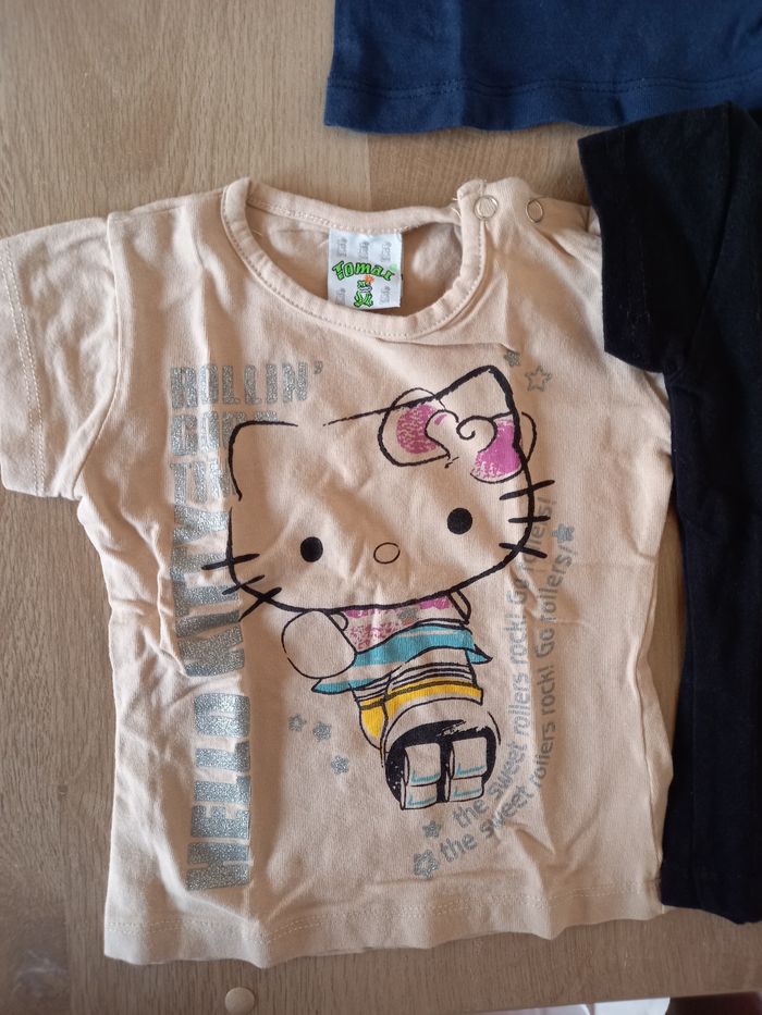Lot de 3 t-shirts manches courtes pour fille taille 12 mois Très bon état il manque juste une pression sur le noir mais ça ne gêne pas