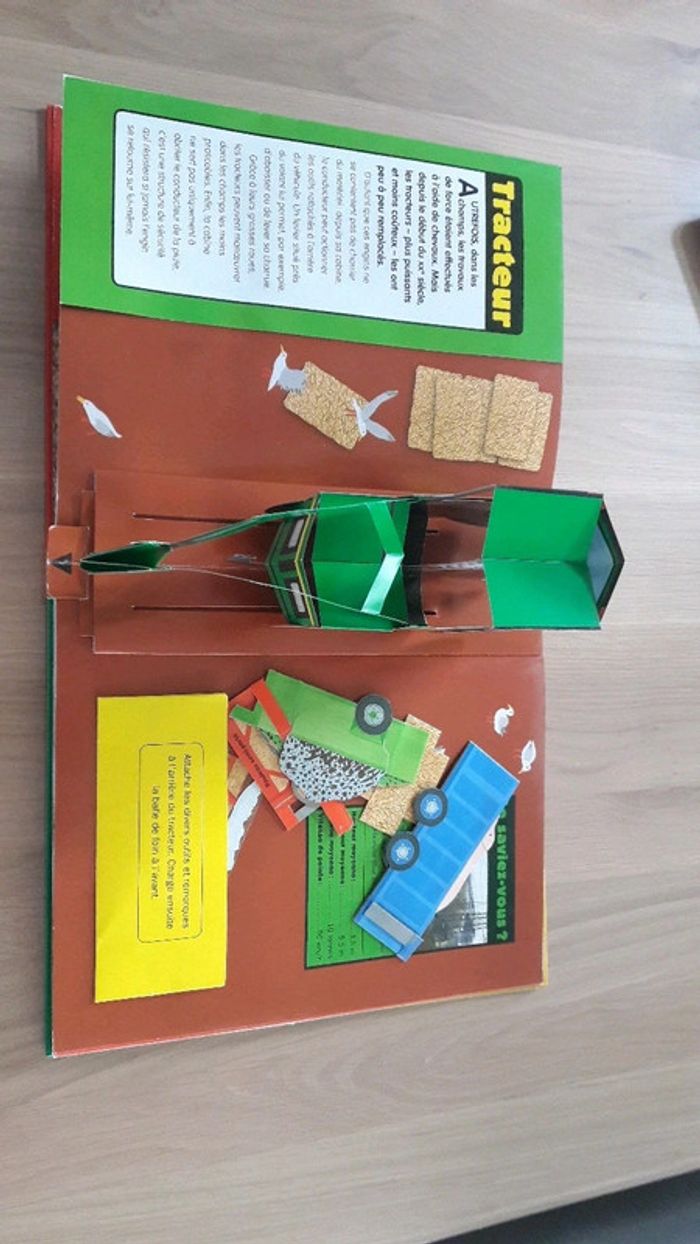 Très beau livre sur les engins, un livre animé en 3d, il a quelques déchirures mais rien de dramatique...la plus importante étant celle du chariot élévateur #livreangel43 (enlever les filtres)