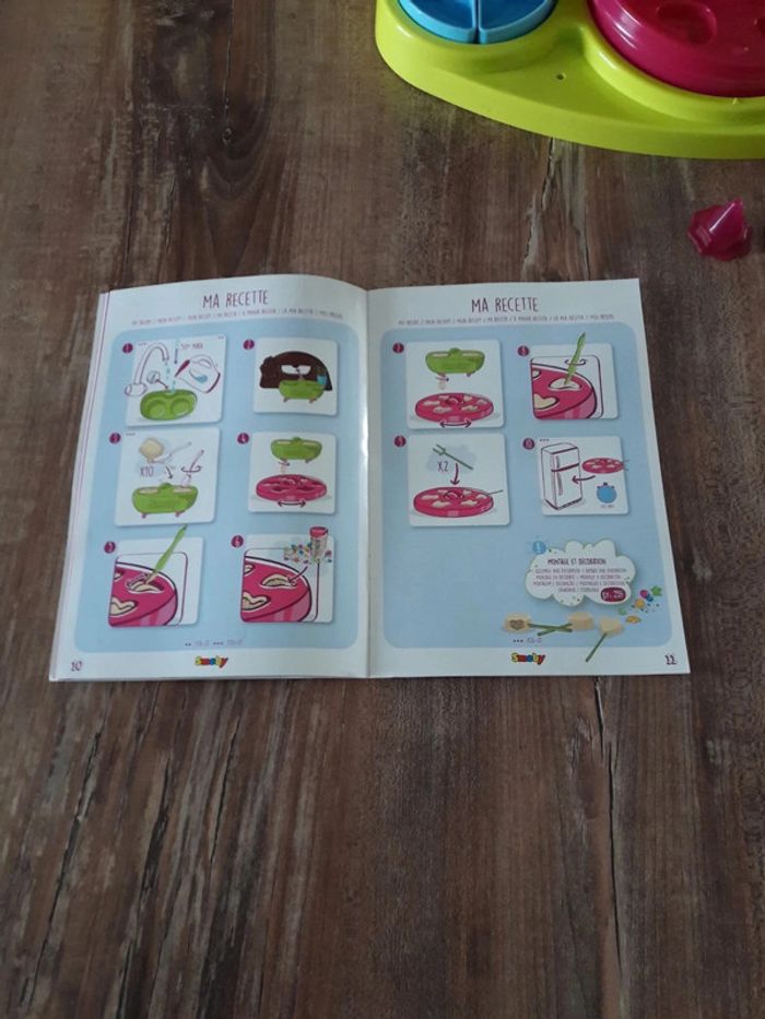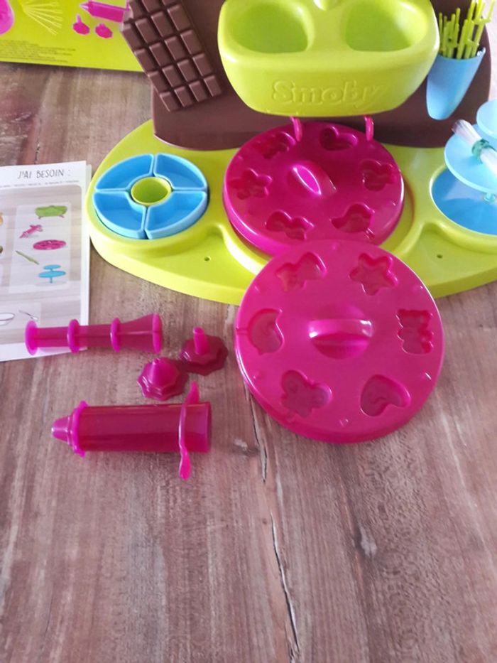 Chocolate factory de smoby, avec son livre de recettes et carton d origine...servi donc il manque des "consommables" un morceau de siphon a été cassé mais ça ne gêne pas le fonctionnement du jeu #angeljeux