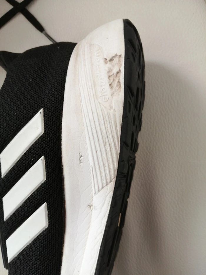 Baskets Adidas t36, portées, montrent des défauts sur le tissu et la semelle voir photos, néanmoins elles sont encore portables #angelshoes