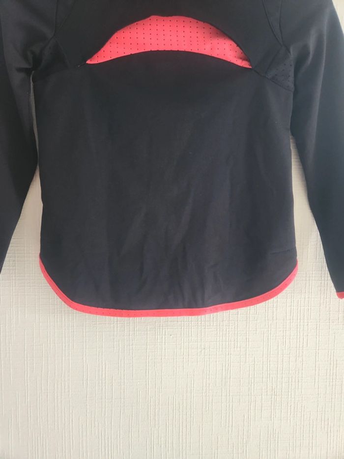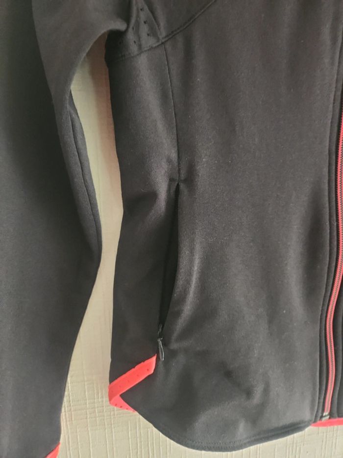 Jolie veste de sport ou pour activités extérieures, noir et rose, 2 poches zippées, se ferme avec un zip, très bon état