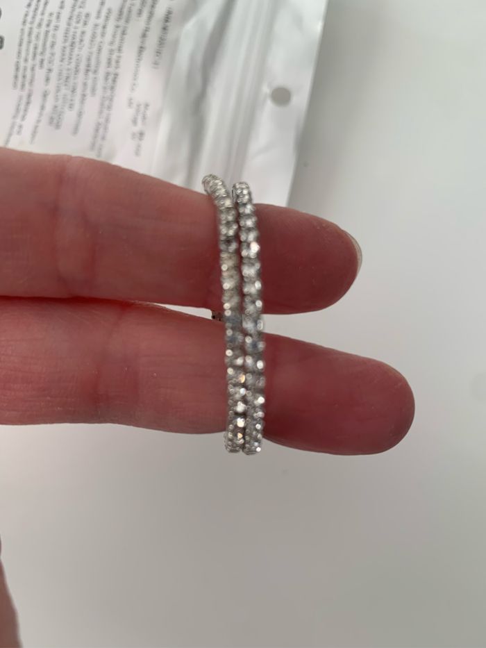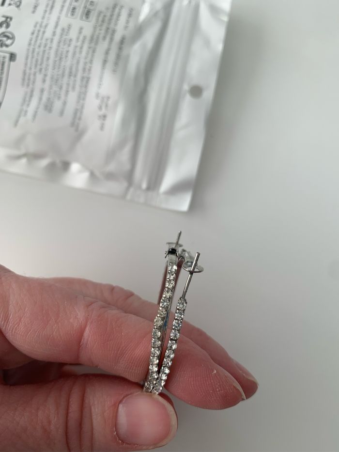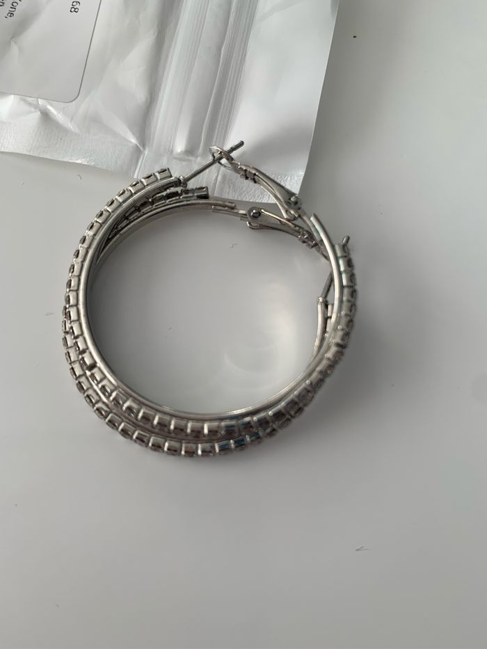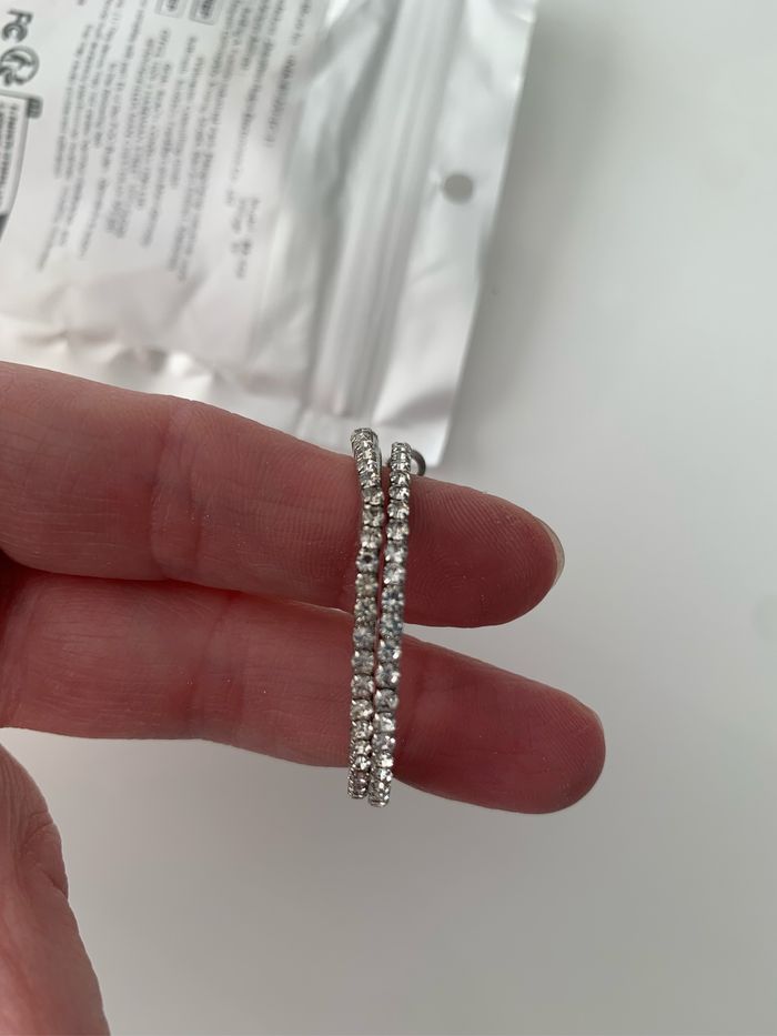 Paire de créoles avec des brillants, neuves . Petit défaut sur l’une d’elles visible sur la photo ( petite déviation des brillants) . 2€