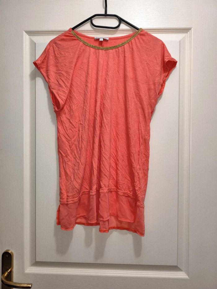 t-shirt naf naf en taille L en tbe corail, regardez mes autres annonce pour regrouper l'envoie car beaucoup de chose en vente en vêtement. envoie rapide et sérieux.