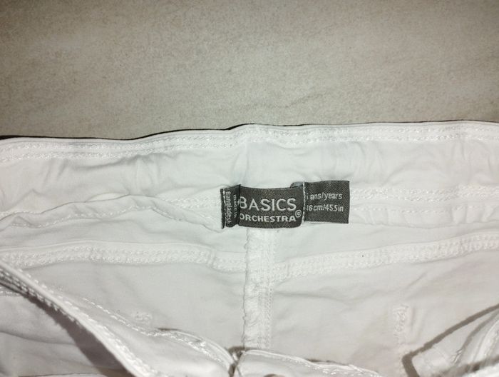 pantacourt blanc pour fille sans tache de la marque orchestra n hésitez pas a regarder mes autres vente pour regrouper l'envoie car beaucoup d'affaire en garçon en tbe ou voir neuf de différente marque comme des pyjama de la marque sergent major, jeans okaidi , TAO.. et bien d 'autre.