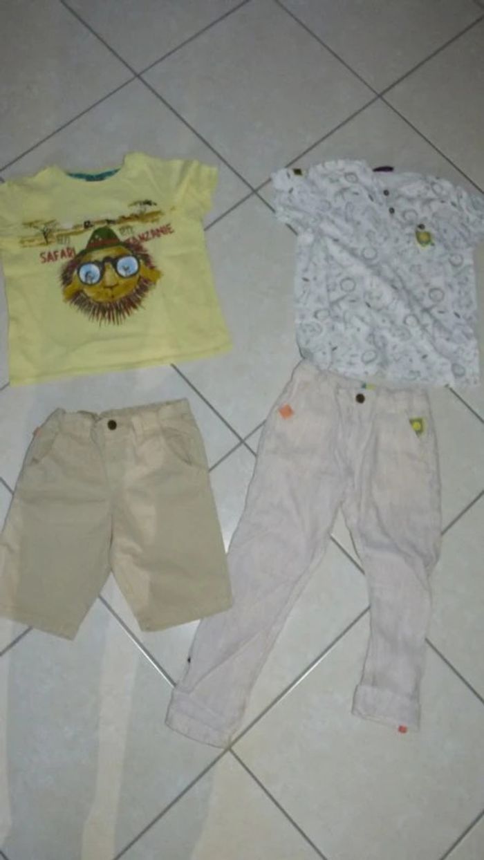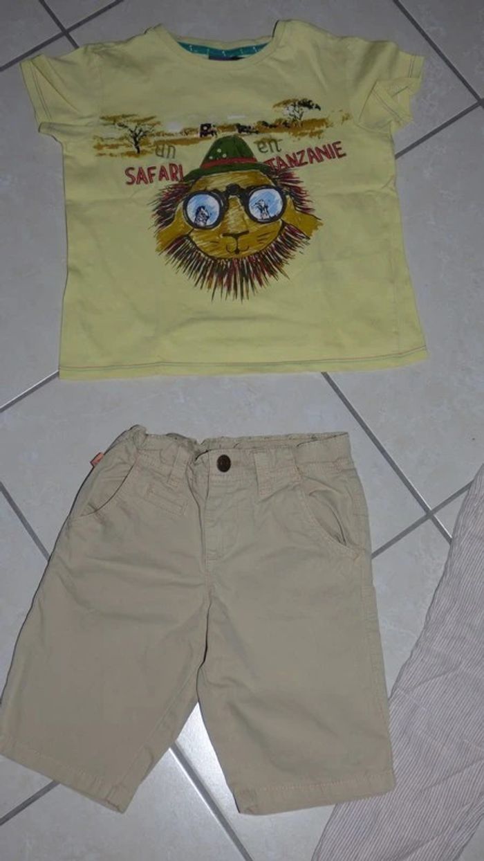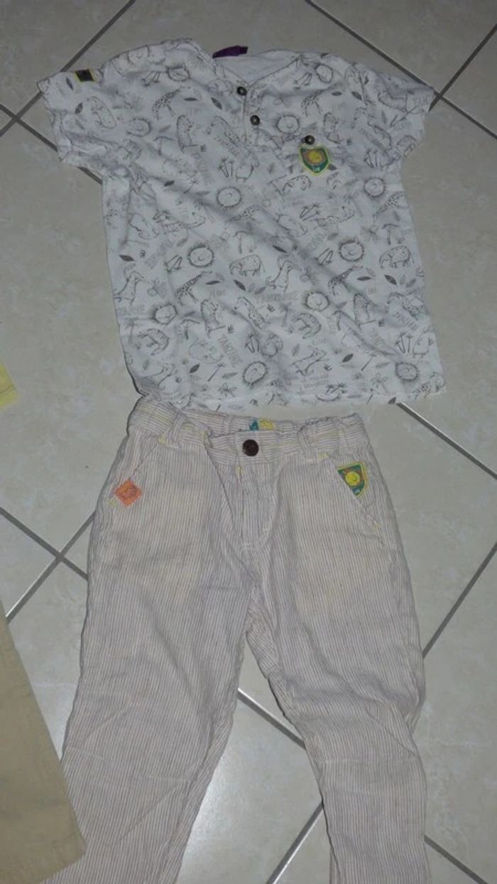 je vend cet ensemble de 4 pieces sergent major le short est un grand 4 ans correspond a un 5, le pantalon un 5 ans et les t shirt petit 6 ans tbe sauf une petite tache dans le dos du t shirt jaune mais se vois a peine.
