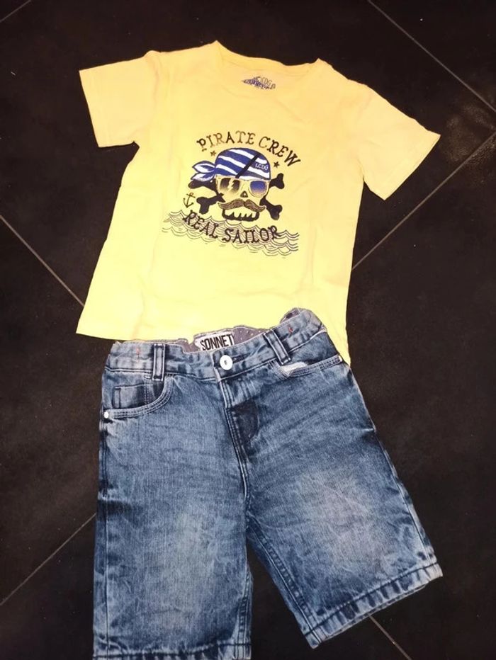 Bonjour, je vend cet ensemble en tbe short en 5/6 ans je sais plus la marque et un t-shirt en 6 ans de la marque compagnie des petits. Tout en très bon état, pensez a regarder mes autres vente pour regrouper l'envoie.