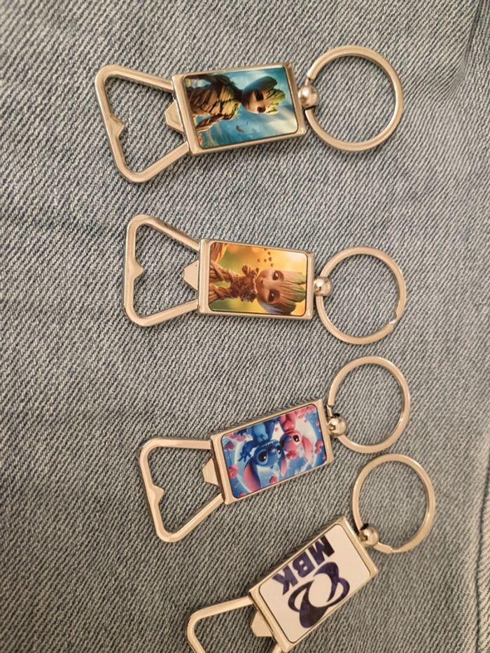 Vend porte clé 7€ l'unité, 10€ les 2, 19 les 3... Images créés par mes soins, modèles uniques, possibilite de rajouter un prénom. Je peux également vendre les horloges assorties et boules plates de Noël