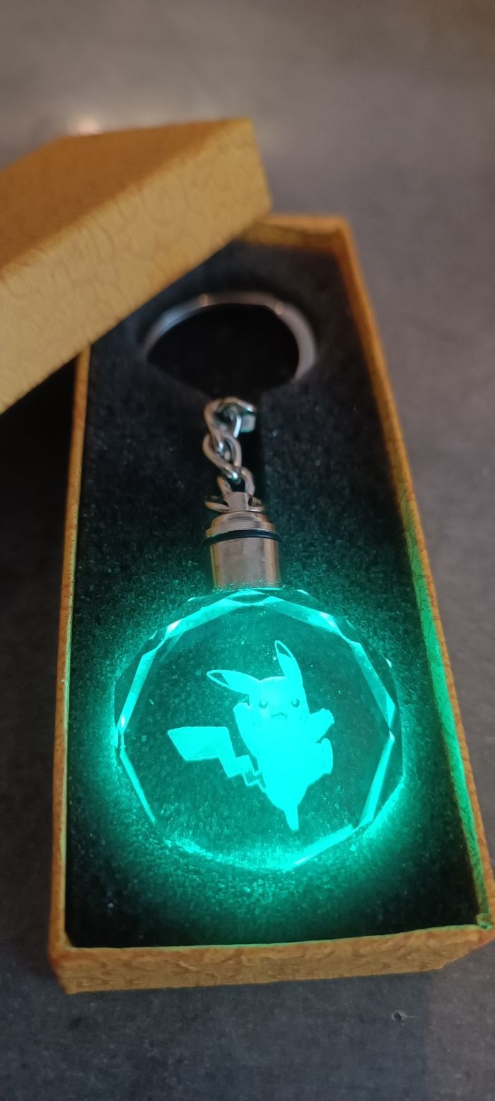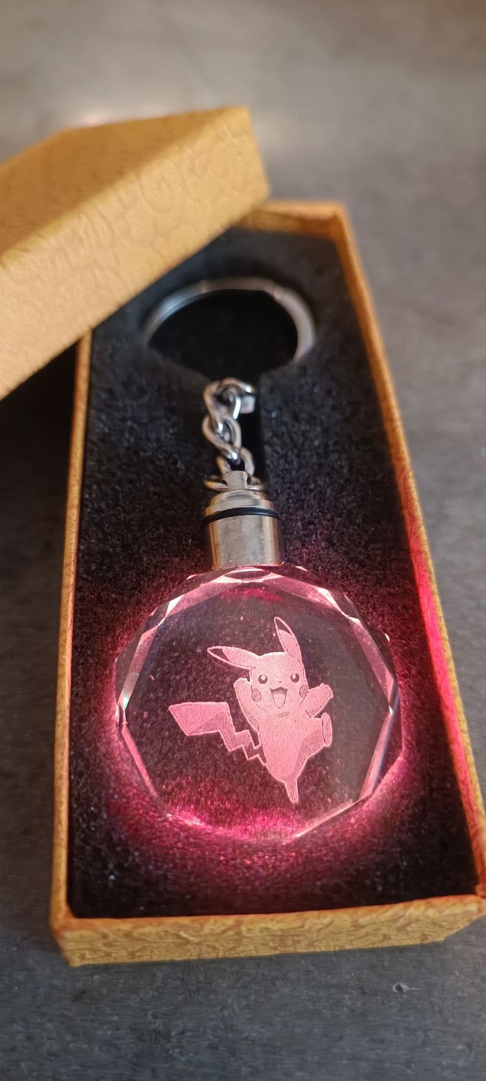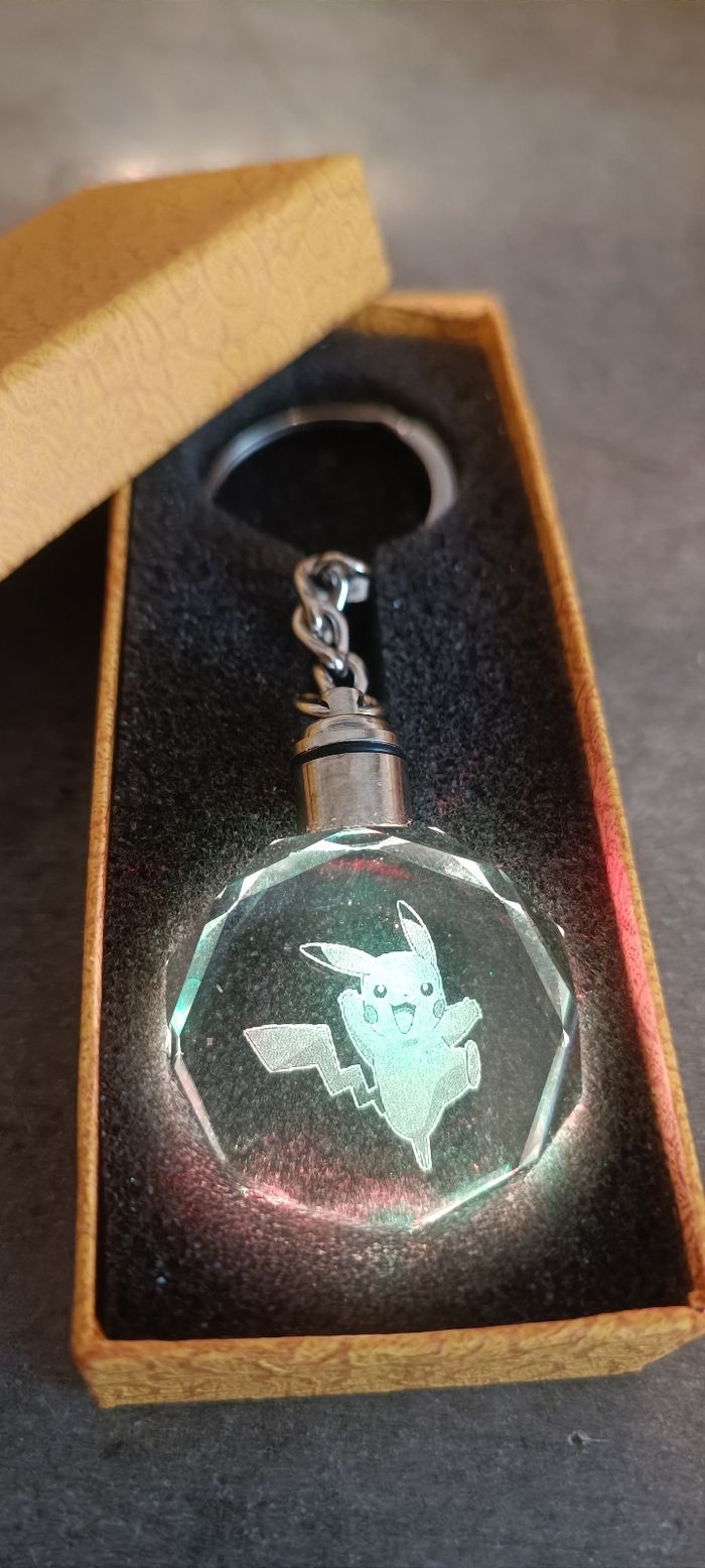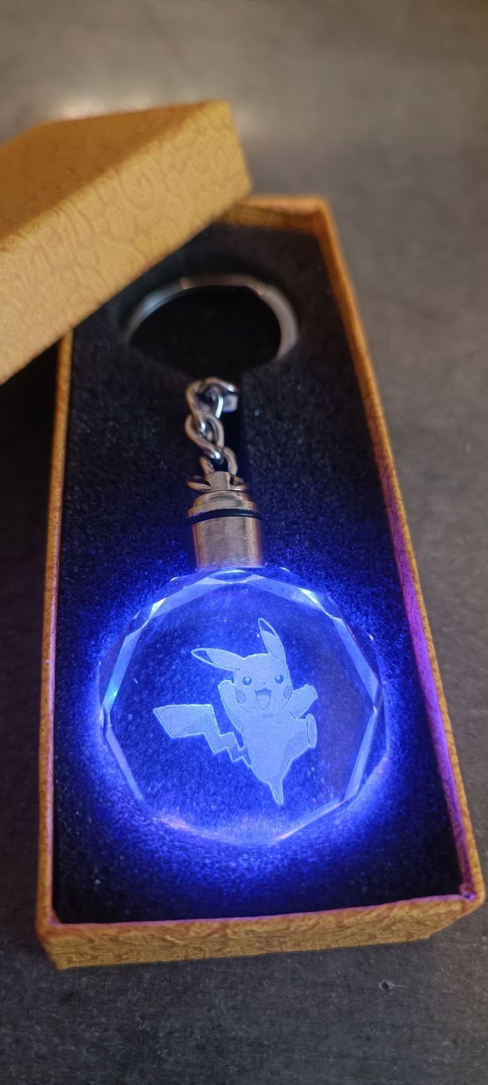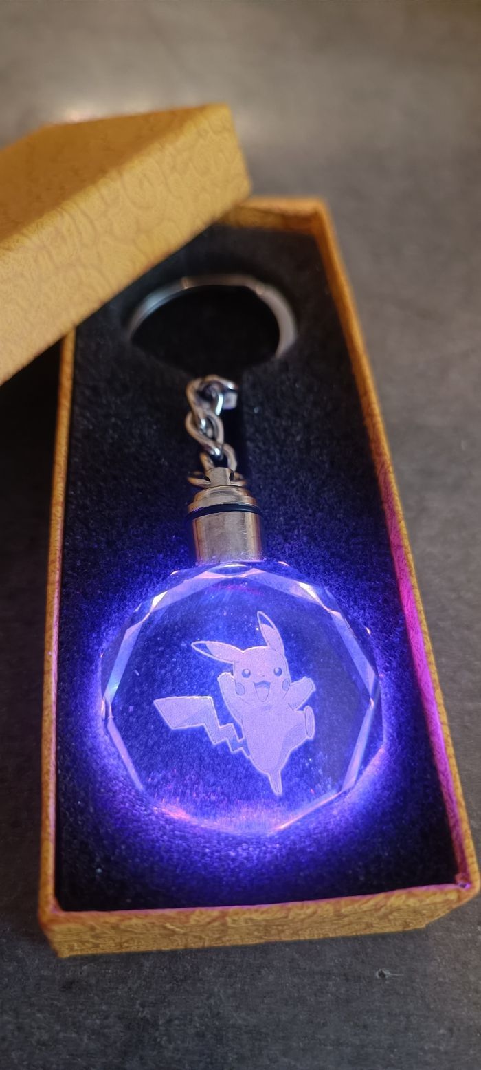 Breloque sac à dos et porte-clés Pokemon Pikachu avec une petite boîte. (lumineux multicolore) État Neuf.