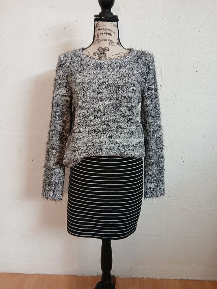Jupe tricot Élastique Plus d etiquette Taille à plat 43 cm Hanches à plat 49 cm Longueur 44 cm Matière de la jupe et taille élastiques Bon etat Pull breal taille 40 à retrouver en vente séparément dans mon dressing