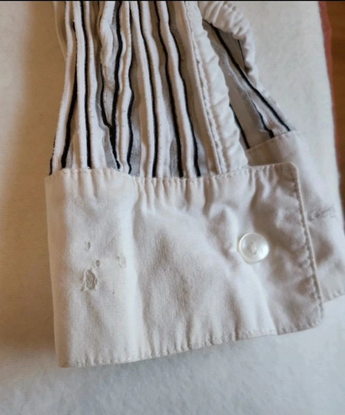 En très bon état, juste le col un peu jauni ( mais qui peux être nettoyer par quelqu'un de patient 😅) et un défaut au niveau de la manche ( voir dernière photo) #coralinemoreyvetementfemme