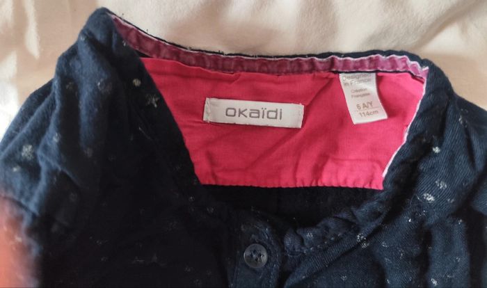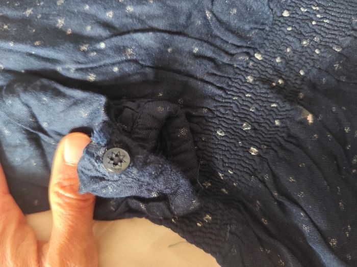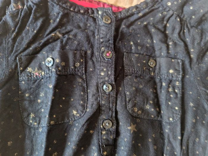 Robe en bon état taille 6 ans. Encolure et manches boutonnées. Un bouton recousu avec fil fushia à l'encolure