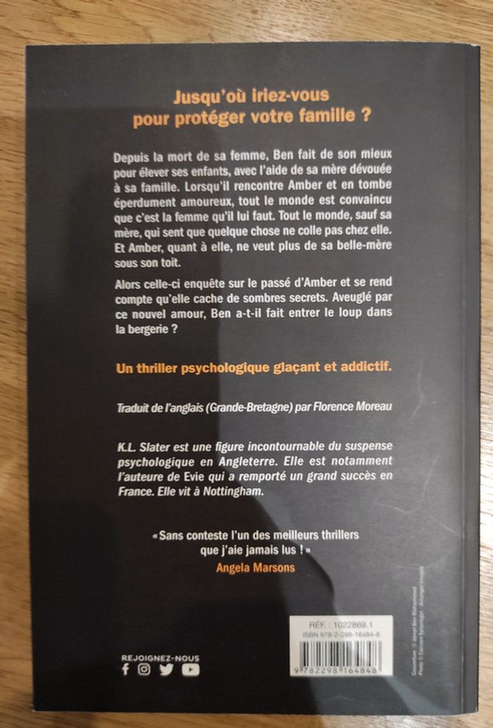Elle ou moi K.L Slater Sa femme ou sa mère, qui ment? Livre neuf