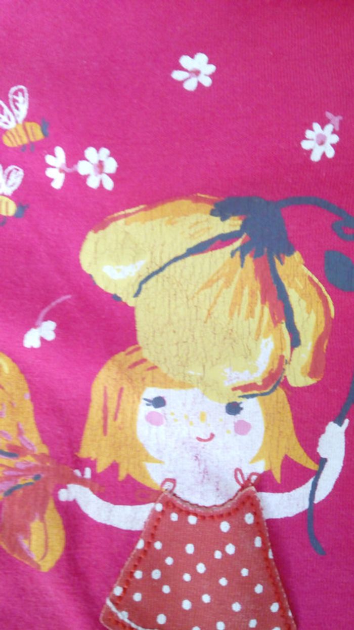 T shirt fille 12 mois. En très bon état mais le motif en flex est un peu craquelé. Jupe fleurie en vente également pour faire un joli ensemble. #catimini #catimini12mois