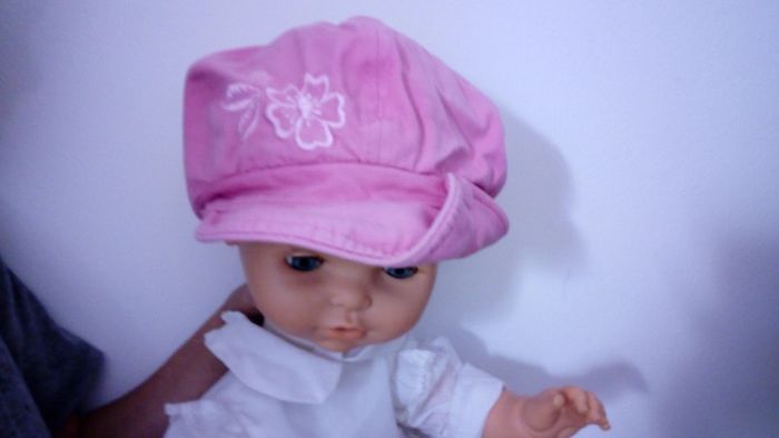 Jolie casquette fille en bon état, juste une petite tâche sur le bouton au dessus de la casquette (visible en photo). Taille 50 cm marque orchestra