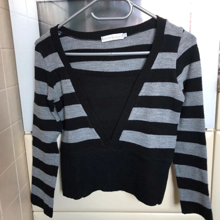 Pull col V rayé