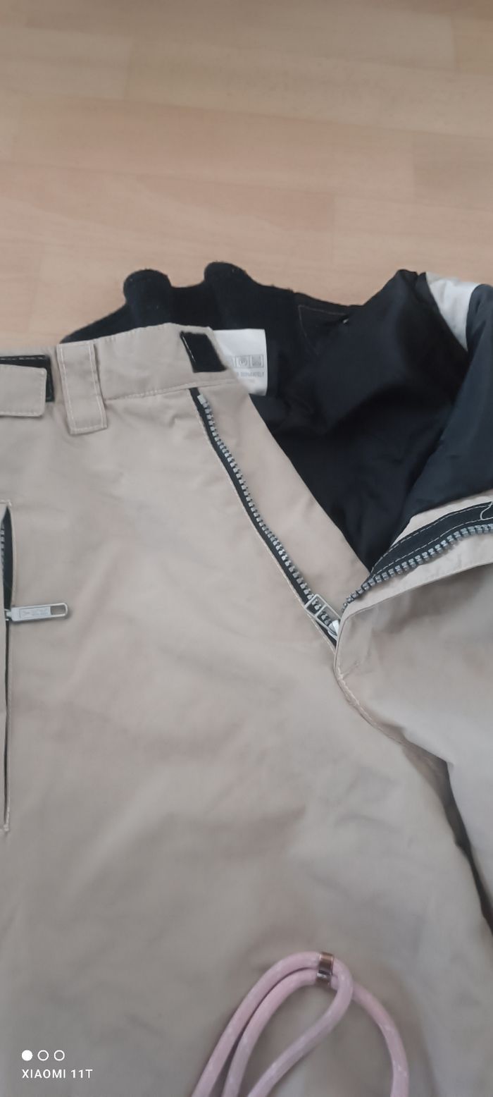 Pantalon de ski garçon taille 10/12 ans Coloris beige et noir Plusieurs poches zippées Se resserre à la taille Longueur totale 100 cm Très bon état un peu taché sur l'arrière des jambes