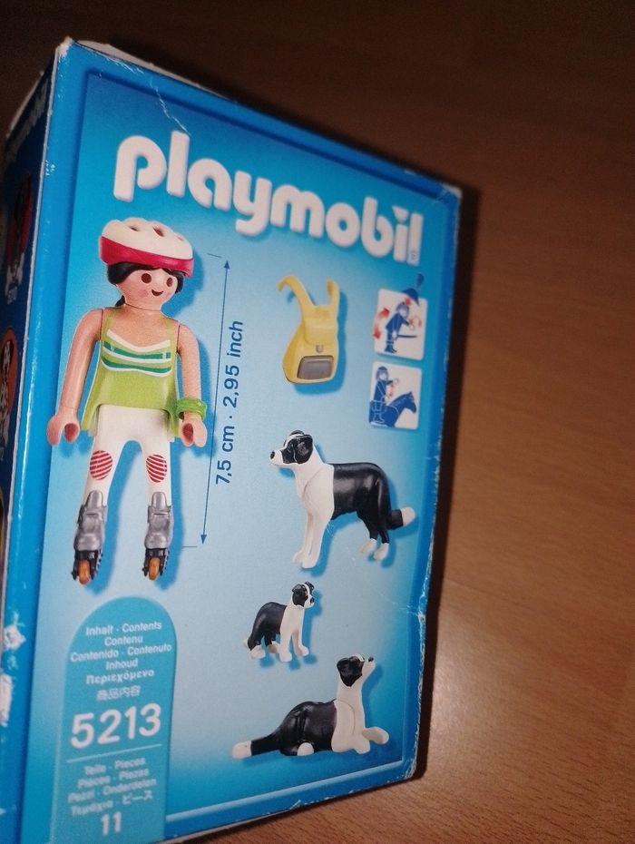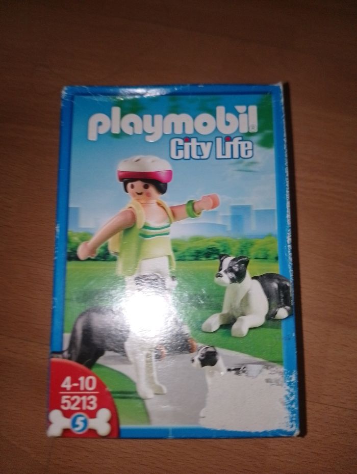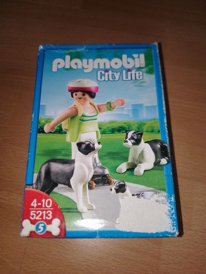 Playmobil city life 5213 neuf Fille en roller avec ses 3 chiens Boîte un peu abimé sur le devant