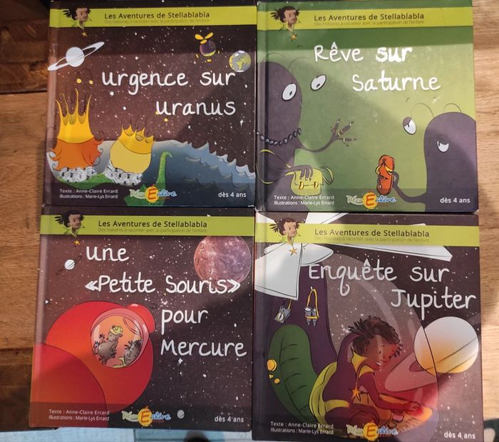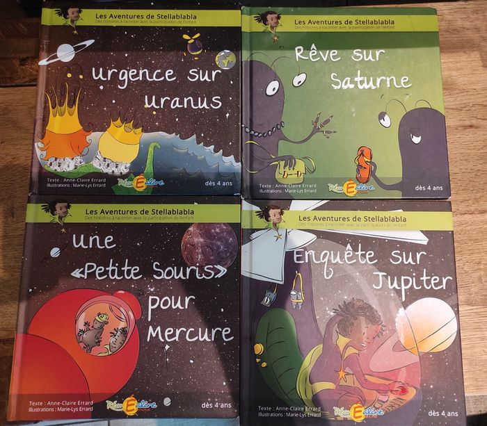 Lot de 4 livres tome 1 à 4 de la collection des aventures de Stellablabla. En très bon état général, juste le tome 1 qui a la reliure légèrement craquelée. Voir photos
