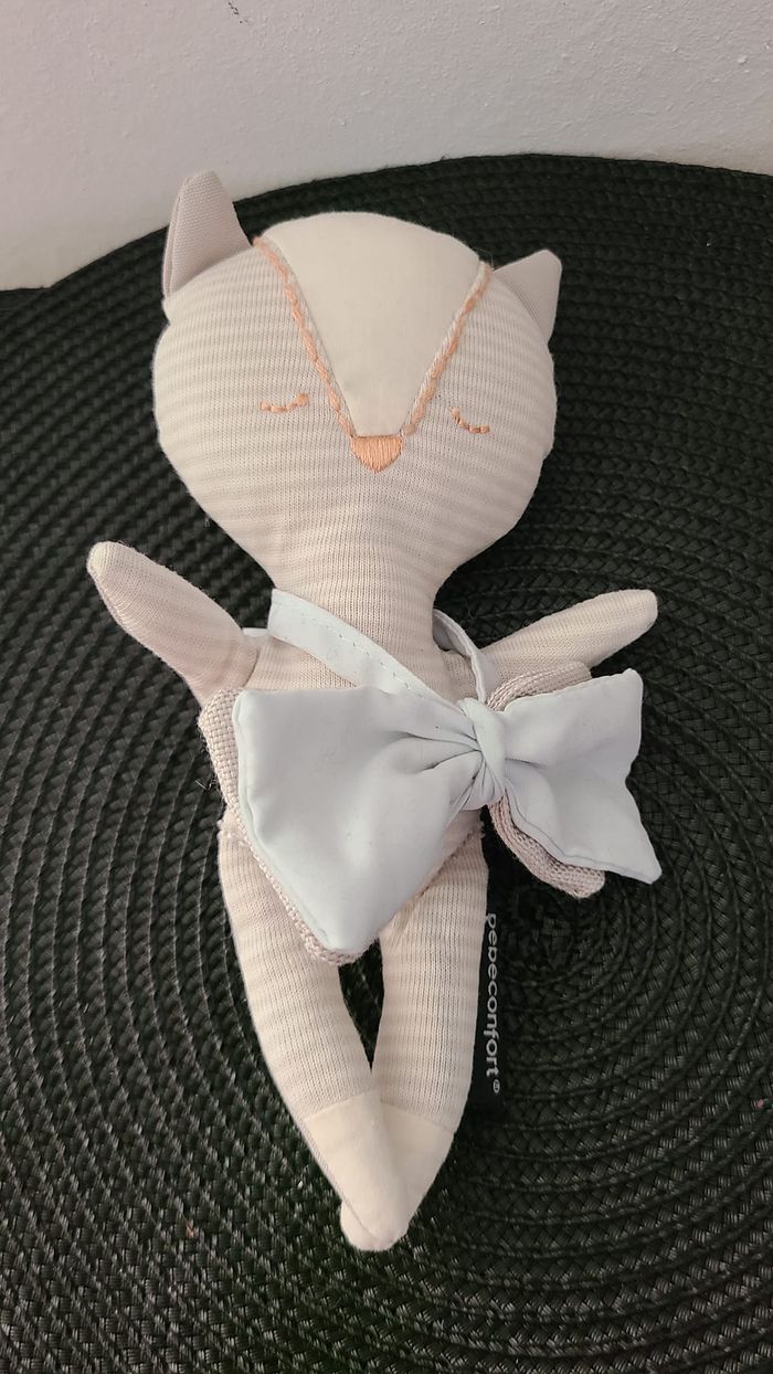 DOUDOU bébé confort bébéconfort chat renard gris bleu noeud papillon 19 cm env. - photo numéro 1