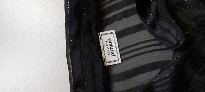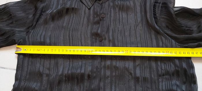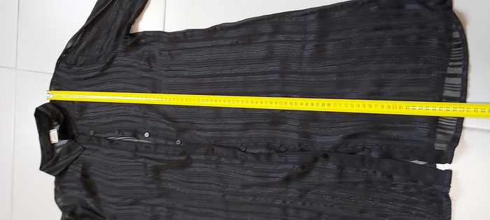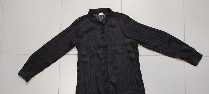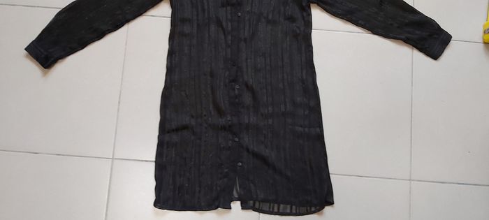 .Chemise tunique manche longue Transparente voir photo 2 passant pour ceinture Ouverture totale par boutons Bouton aux manches Couleur noir et brillant Correspond à du L #carineddiLfemme