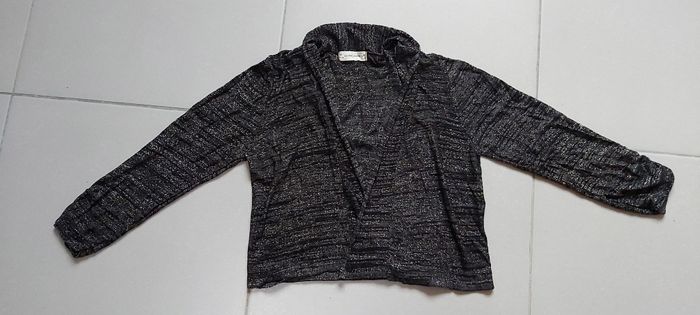 .Gilet court sans bouton Manche 3/4 ( bord des manche fripé) Couleur noir et gris brillant Correspond à du S #carineddiSfemme