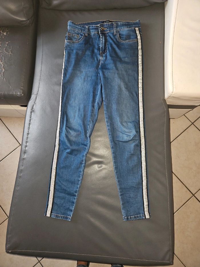 Jean slim femme taille 38 bande argentée - photo numéro 1