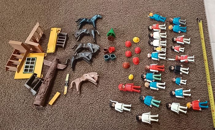 Gros lot playmobil vintage Accessoire, personnage adultes et enfants, cheval chevaux, sceau, indiens totem indiens, un ski échelle sapin.... Casque ... Collection jouet figurine articulée peluche poupee ancienne maison non fumeur et sans animaux n'hésitez pas à faire des lots