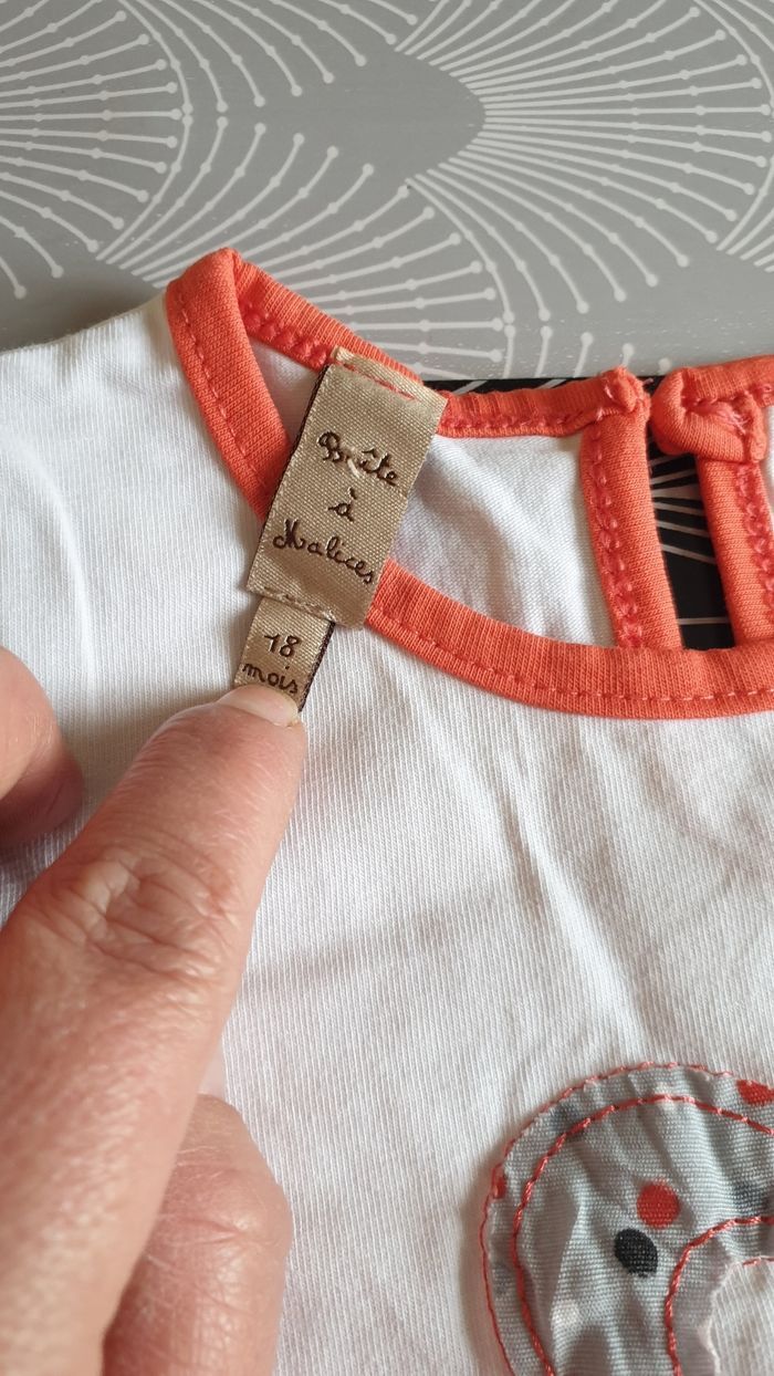 Joli ensemble orange et blanc taille 18mois marque boite à malices très bonne état
