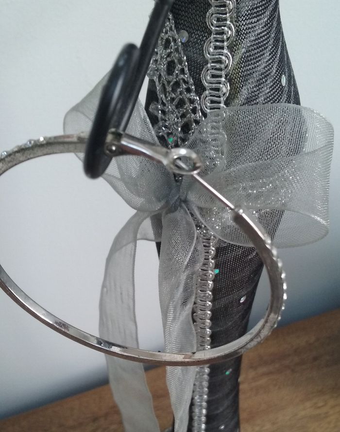 Boucle de 5,5 cm pour oreille percée, couleur argentée avec strass.