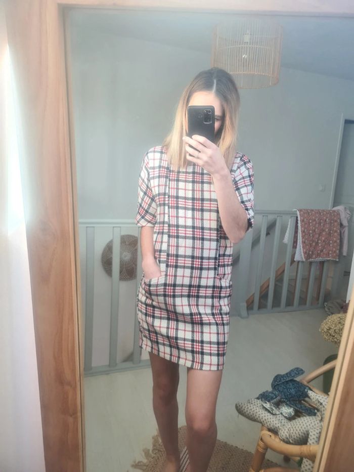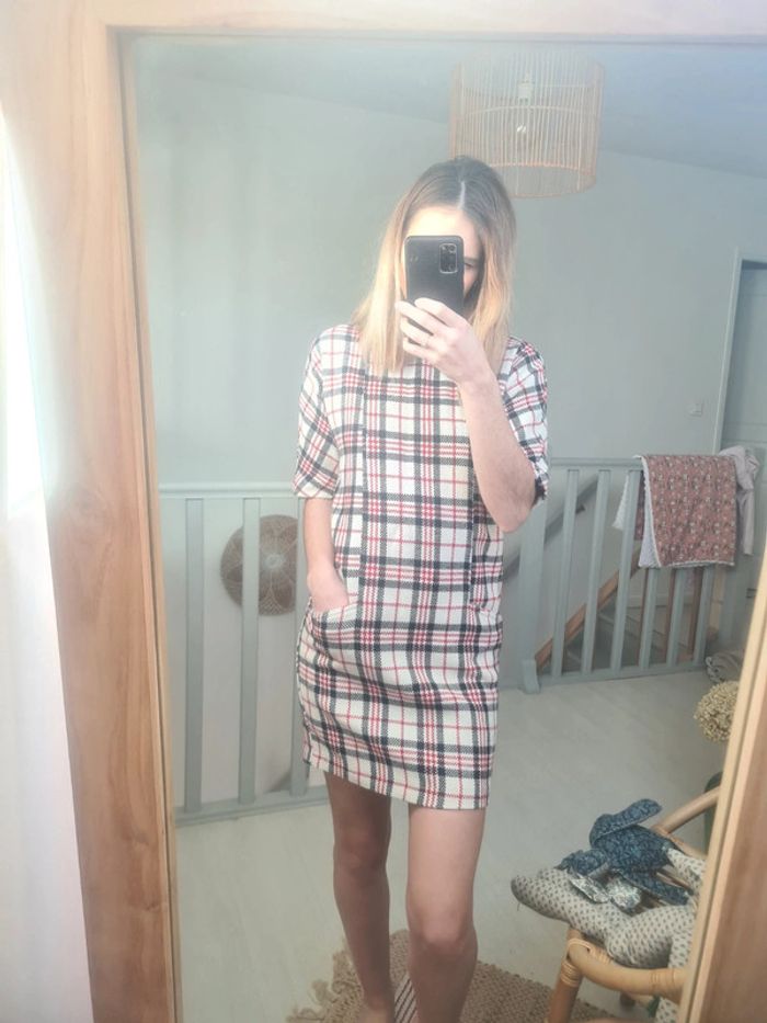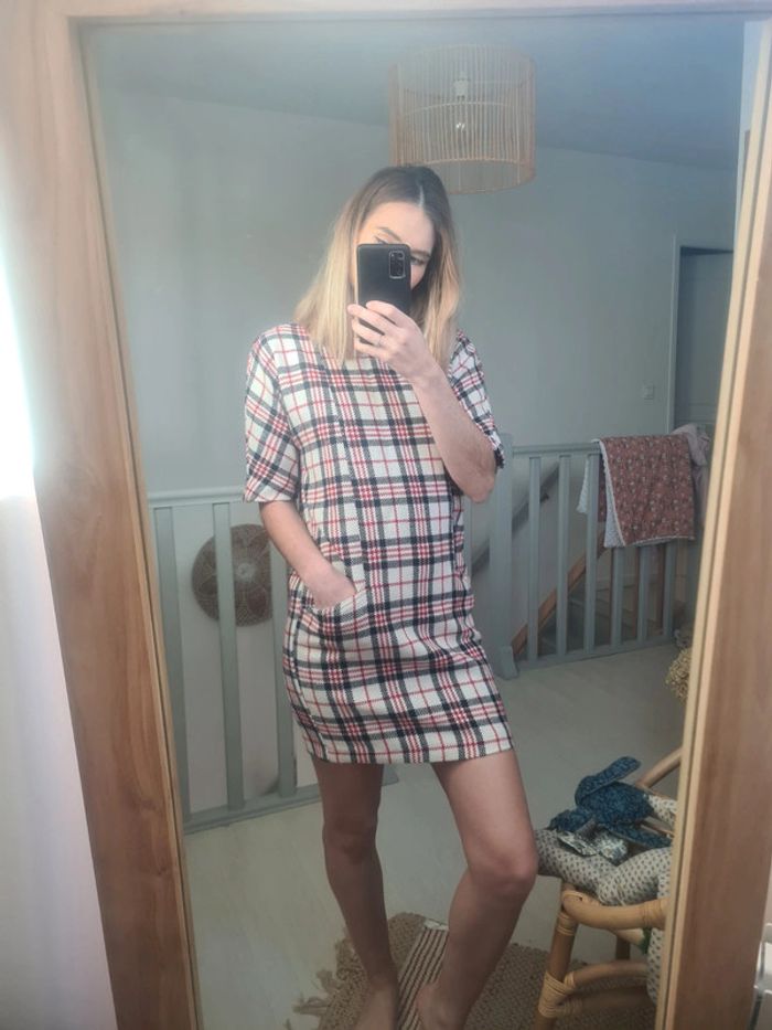 Très jolie robe zara tartan rouge et marine Taille S Très peu portée, comme neuve Deux poches sur l'avant