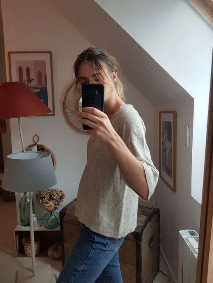 Tres joli pull large sud express Taille L , parfait pour un taille S porté loose Manches larges Gris et gris chiné avec fils argenté dans le col Excellent état