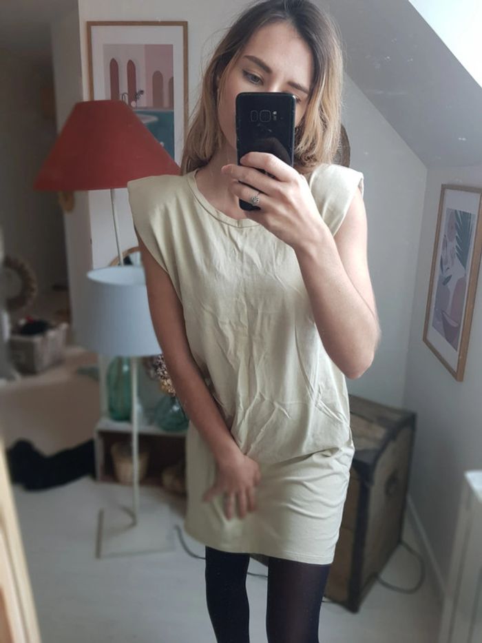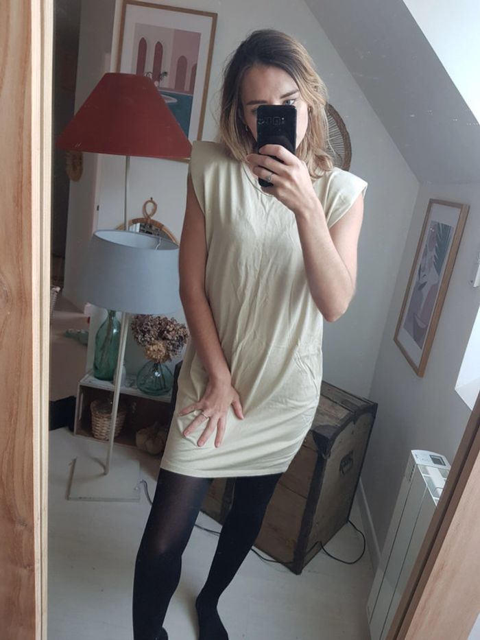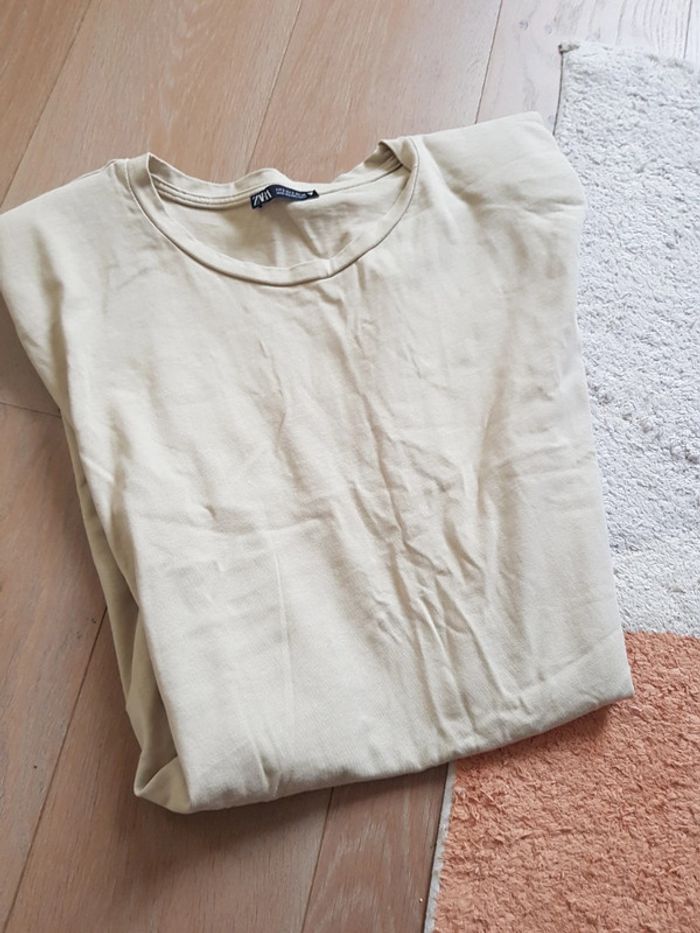Tres jolie robe tee-shirt beige Avec épaulettes Zara, collection de cette année Tres bon état Taille s