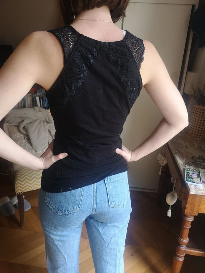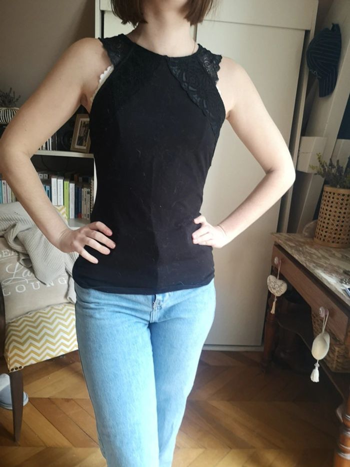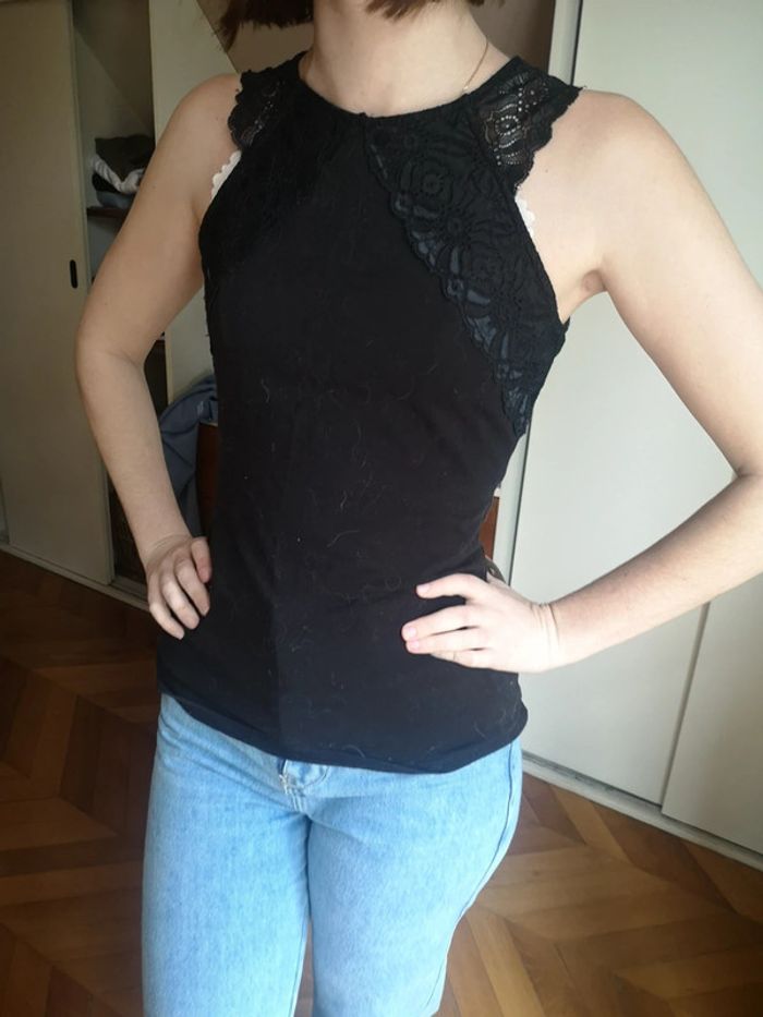 Top moulant noir Dentelle noire sur le haut Très bon état H&M taille S