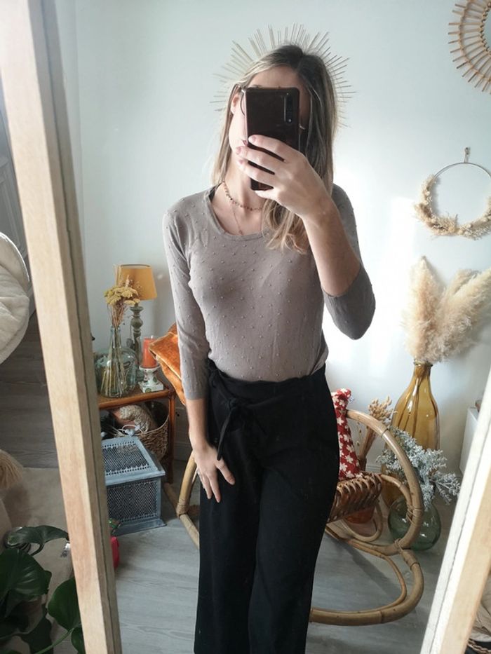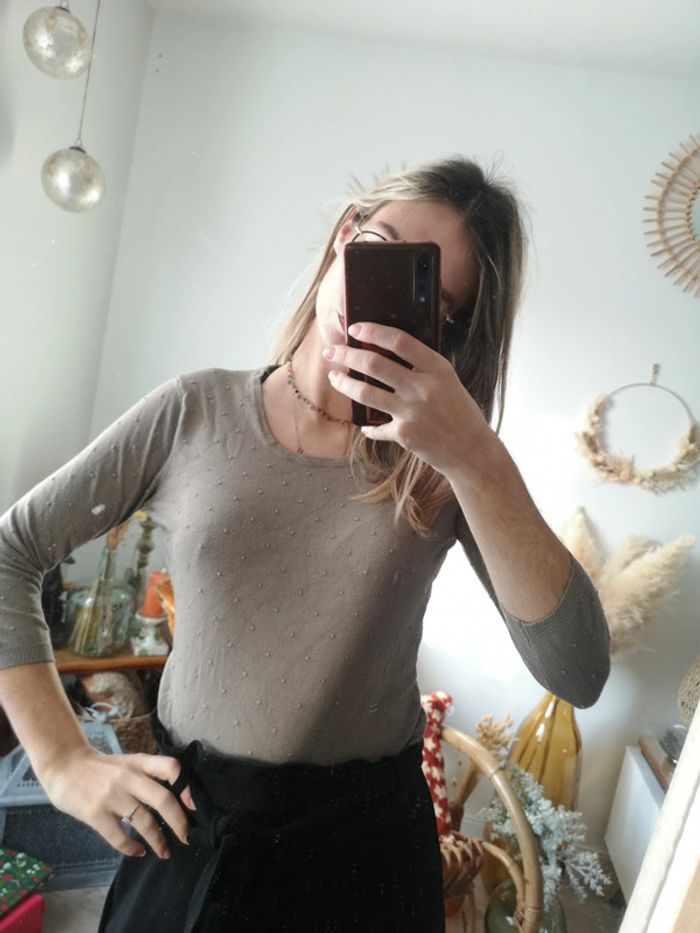 Pull manches 3/4 Marrons et plumetis Taille S Mango