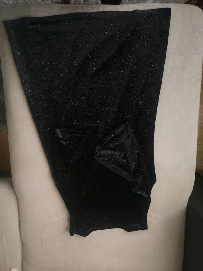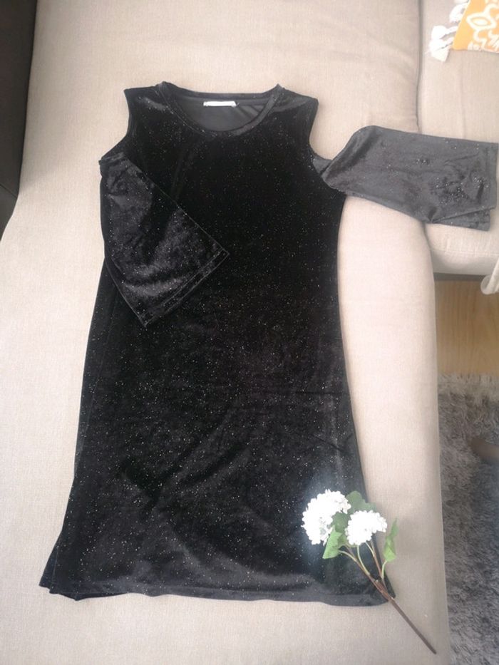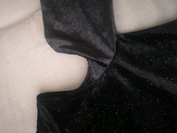 Superbe robe de soirée en velours noir avec paillettes doré 🌼 épaules dénudées et manches mi longues 🦊 Taille XS Neuve, jamais portée 👗 N'hésitez pas à aller voir mon dressing, je fais des prix pour les lots 🌸