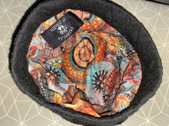 L’élégance à la française Toque dame noir viscose laine Falbalas St Junien 60% viscose 40% laine intérieur imprimé multicolore Taille unique Toujours vendu en magasin à 59€ Fabriqué en France 🇫🇷