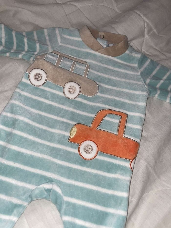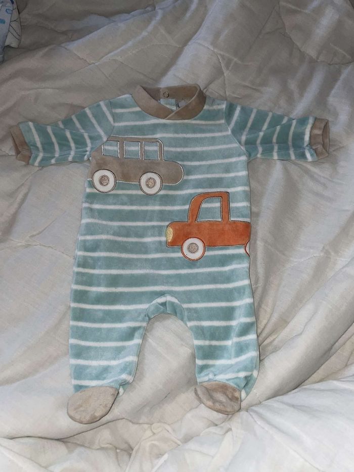 Pyjama à pieds Avec petites voitures En super état Taille 1 mois Sans marque En velours