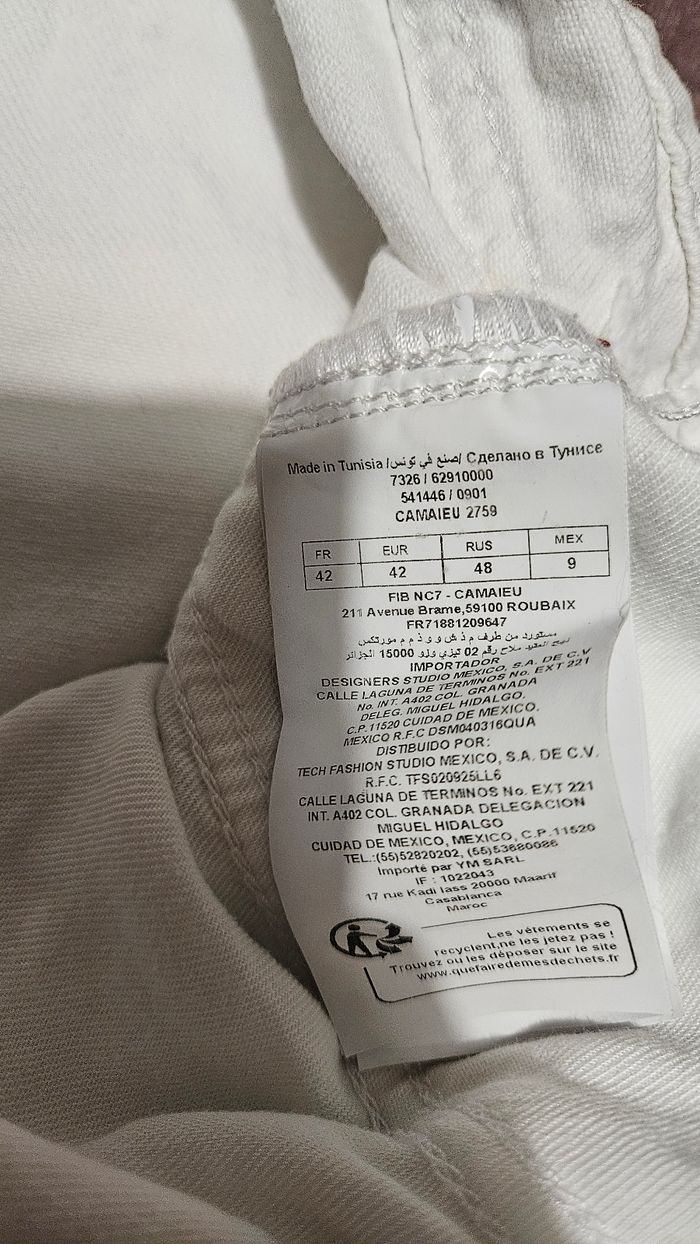 Jean blanc femme . Presence de 2 petites tâches comme indiquer sur les photos.