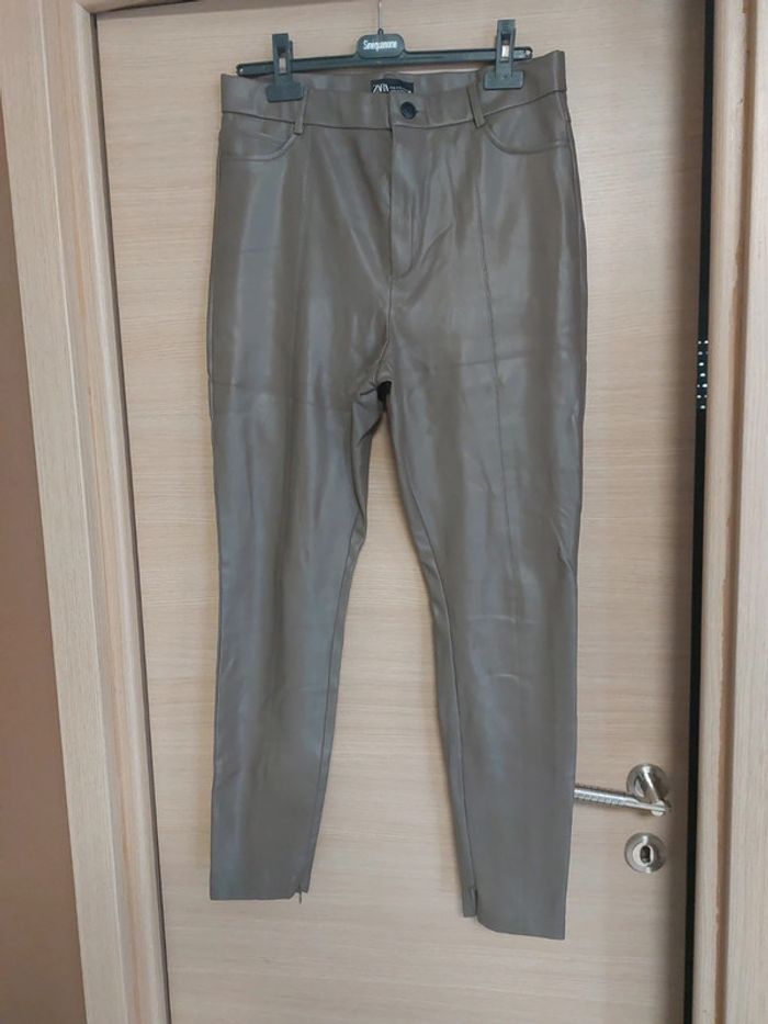 Jolie pantalon kaki effet cuir chaud - photo numéro 1
